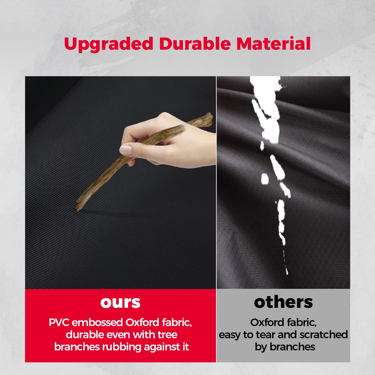 The kemimoto soft top cover is fixed in all directions to prevent flapping and moving under speed. Made of durable oxford cloth, this soft roof top is not easy to tear by branches. A must-have UTV accessory.