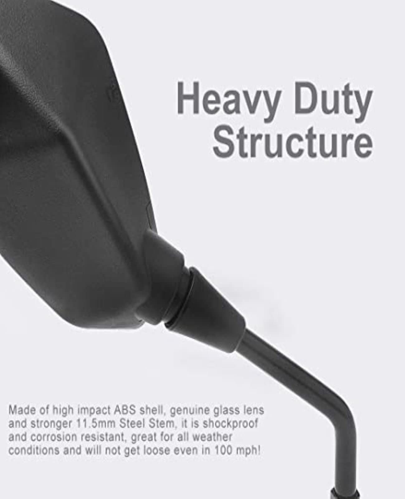 Both left and right side motorcycle mirrors with convex glass lens, offers you a high definition and wide-angle rearview vision. High-impact ABS shell and durable black coating, built for long-lasting.