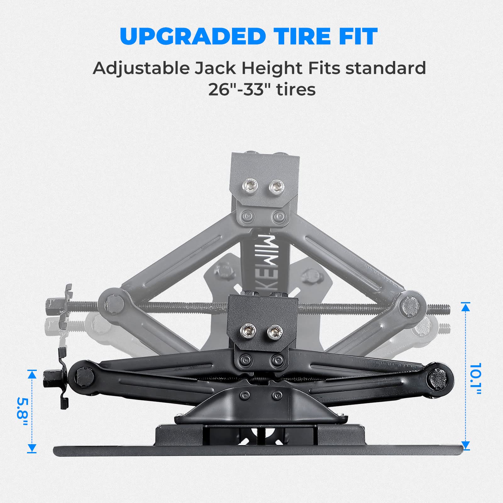Kemimoto spare tire carrier can adjust the height to fit 26-33 inch standard tires.